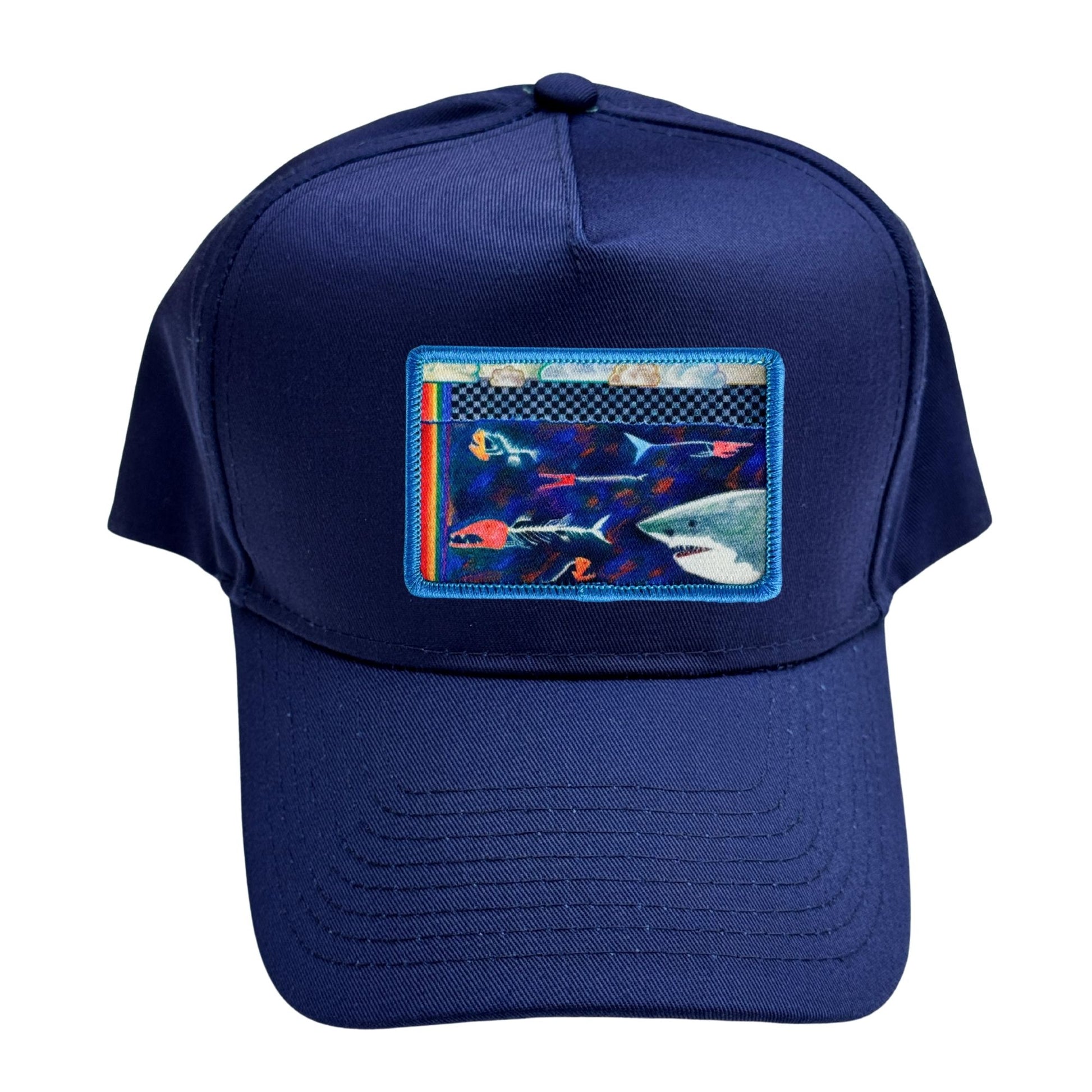 Elevate your golf game or everyday style with this classic 5-panel twill golf cap featuring your choice of exclusive "Sharks and Checkered Skies" art patches. Each 3" x 2" patch showcases the vibrant, bold artwork from our signature series on a premium structured front panel.